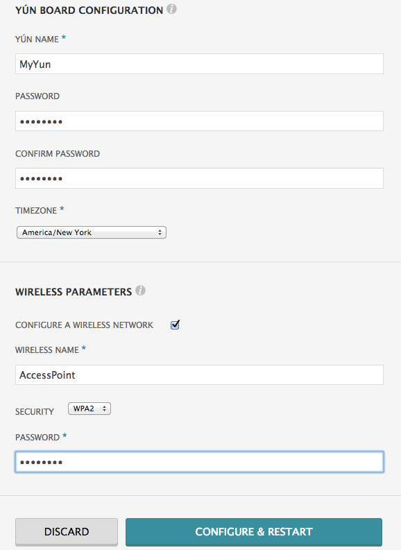 The Yún has the ability to act as an Access Point, but it can also connect to an existing network. These instructions walk you through connecting your Yún to a wireless network. The Yún can connect to unencrypted networks, as well as networks that support WEP, WPA, and WPA2 encryption.
