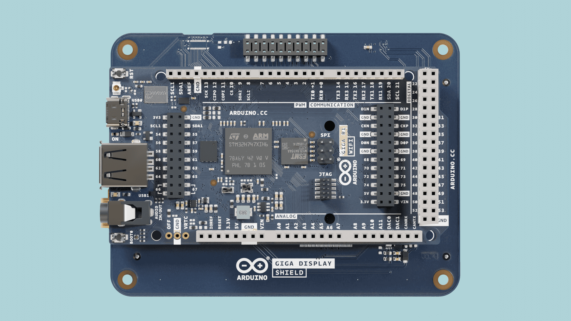 The GIGA Display Shield is an accessory shield designed for the GIGA R1 WiFi board. With it, you can render fast & sophisticated user interfaces on a 800x480 display with touch support.
